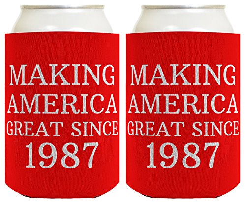Republican Gifts for 30th Birthday Making America Great Since 1987 30th Birthday Gag Gifts for Republican Party 2 Pack Can Coolie Drink Coolers Coolies Red