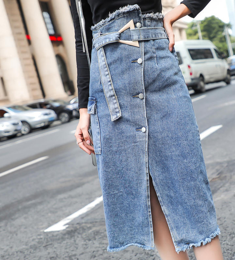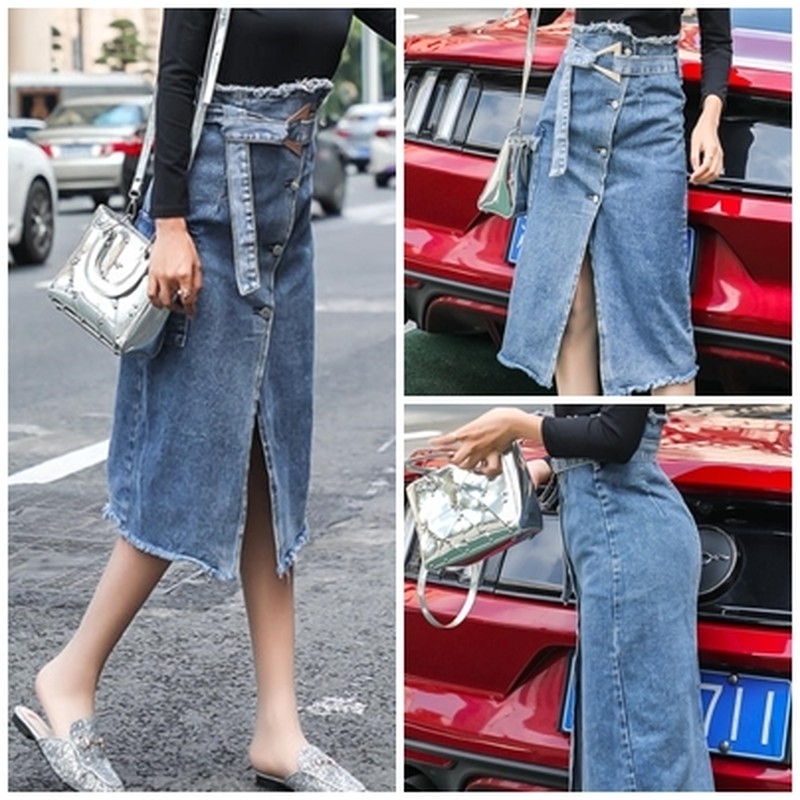 ♢ポイント♢ ベルトデザインがおしゃれなデニムスカートです。 タイトめのトップスと合わせると◎