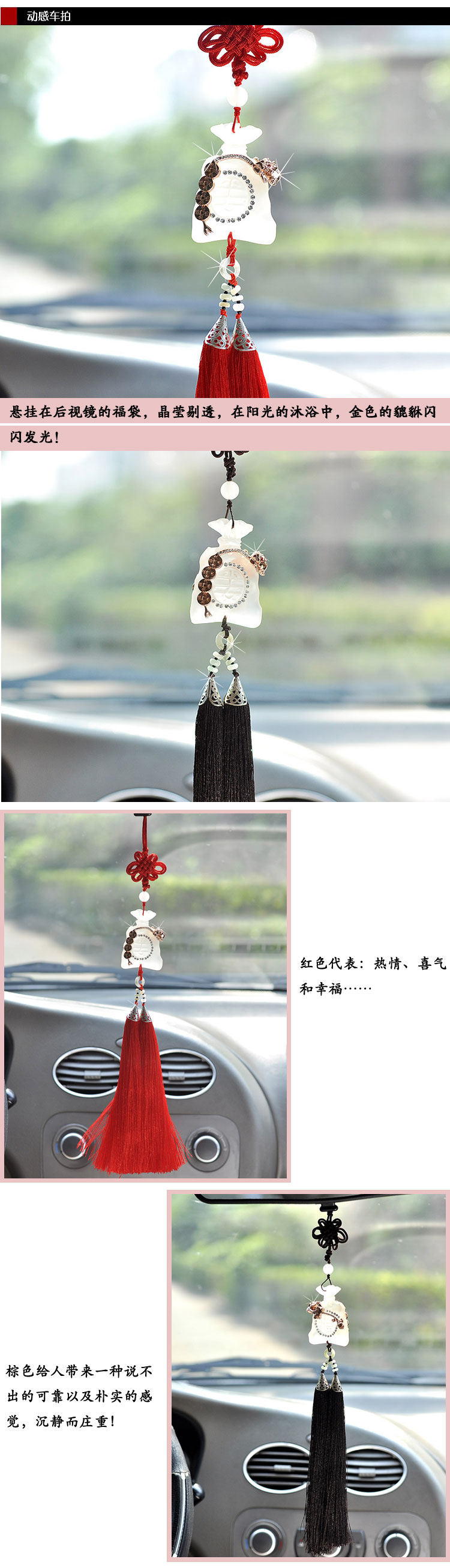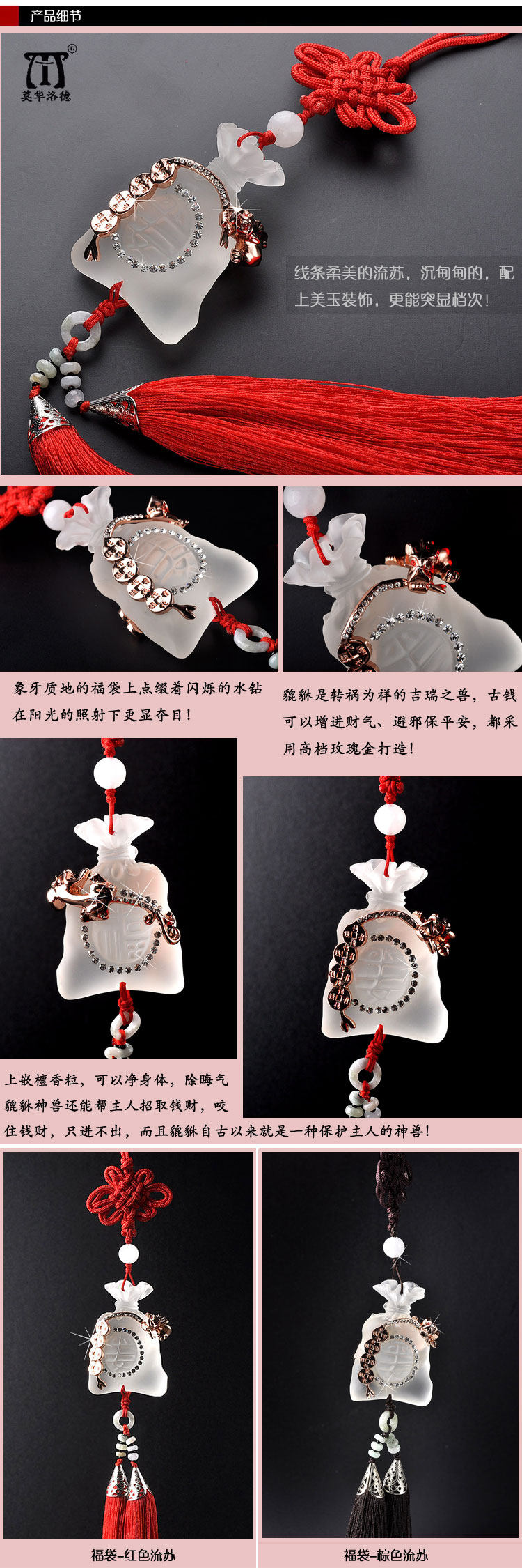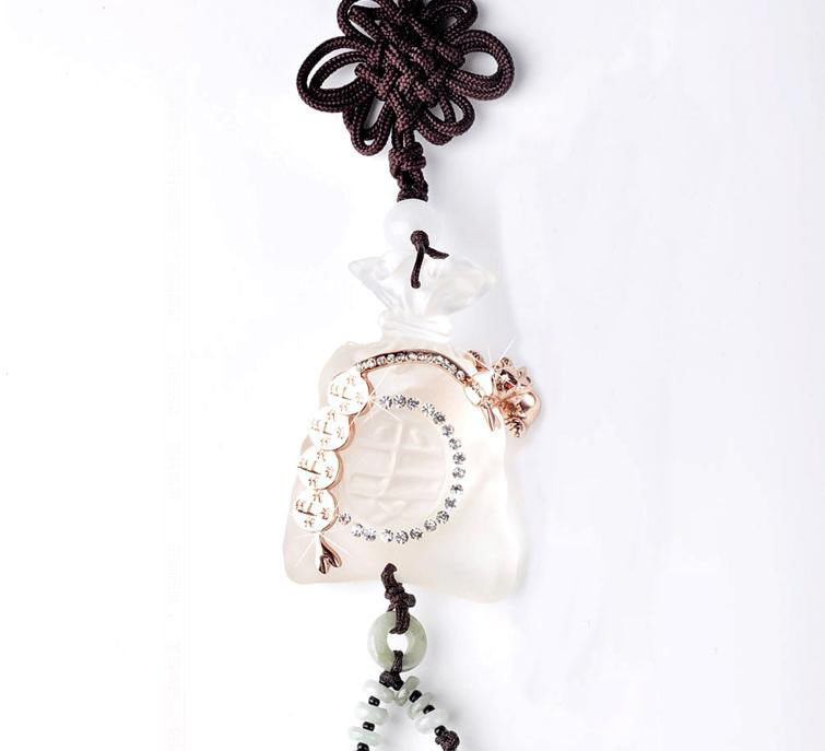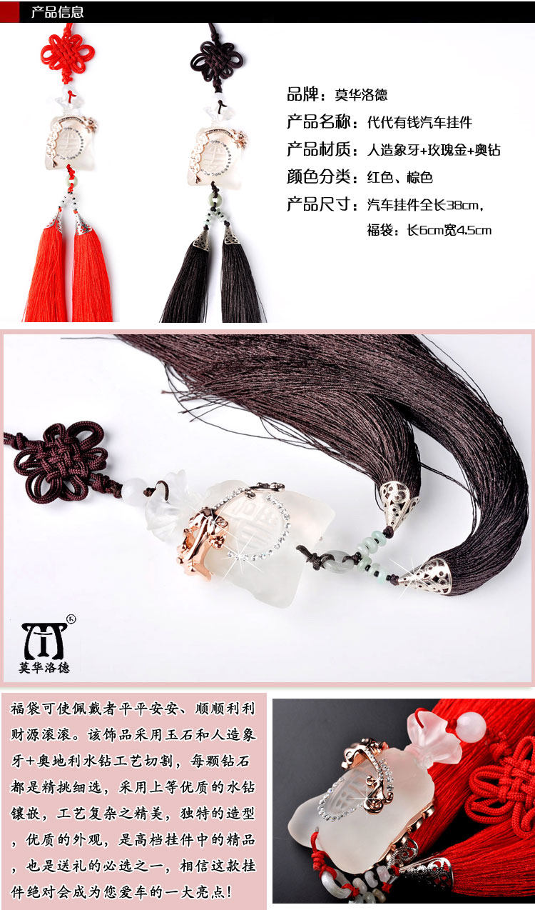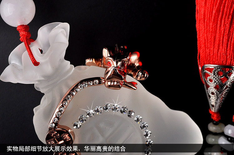 Product Name: Mo Hua Lord Fukubukuro car ornaments Material: artificial ivory + Austria Crystal + Rose Gold Size: pendant length: 38cm Fukubukuro: 6cm long 4.5cm wide