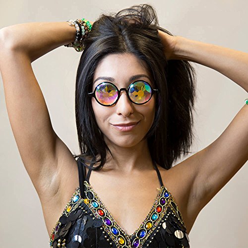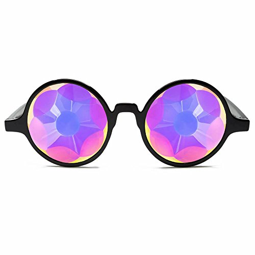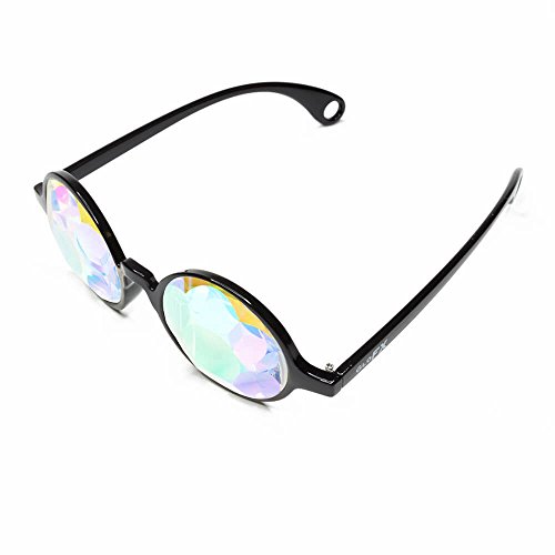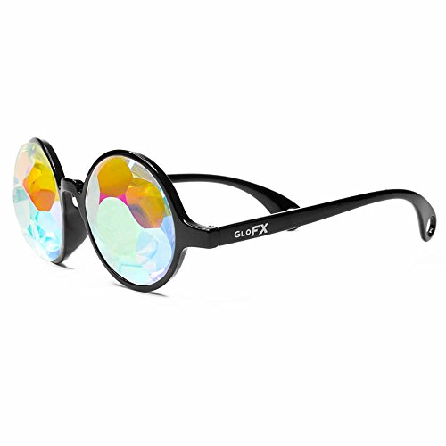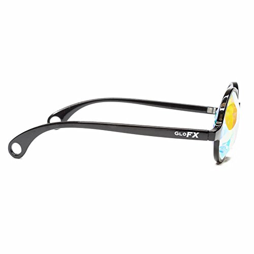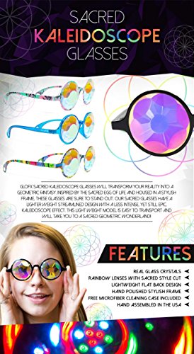 Binding : Apparel Product Description GloFX Sacred Kaleidoscope Glasses will transform your reality into a geometric fantasy. Inspired by the Sacred Egg of Life and housed in a stylish frame, the Sacred Kaleidoscope Glasses are sure to stand out. This exclusive faceted crystal has clean-cut lines and colorful rainbow fuming. With thinner flat back rainbow crystals, this style will feature more clarity and a less intense effect than our regular Kaleidoscope Glasses. Our Sacred Glasses have a lighter weight streamlined design yet still produce an epic Kaleidoscope effect. This light weight model is easy to transport and will take you to a Sacred Geometric wonderland! See rainbows through a pair of GloFX Sacred Kaleidoscope Glasses. Our Flat Back Kaleidoscope Glasses are hand assembled in a jet black frame. These glasses are sure to stand the test of time and provide you with endless visual euphoria. The thin crystals featured in each pair will test your vision and make you question reality. Featuring stainless steel hinges and a glossy finish, you can't go wrong with this design. Each frame is carefully selected and paired with unique crystals, made from high-grade optical glass for maximum light transmission. You will not find a nicer pair of Flat Back Kaleidoscope Crystals on the market today.