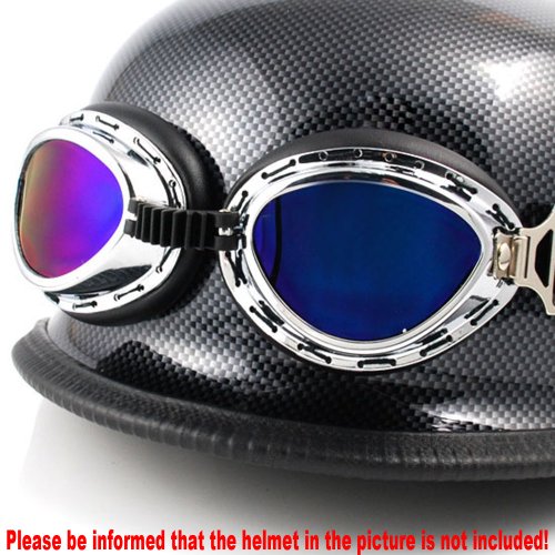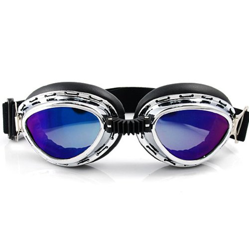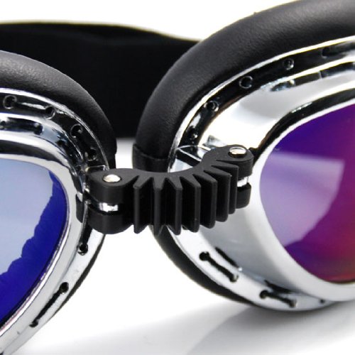 -. Title : Retro Style Military WWII RAF Aviator Pilot Small Size Chrome Plated Frame Rainbow Lens Elastic Strap Padded Frost UV Goggles For Outdoor Hiking Skiing Snowboarding Ice Sledding Off Road Motorcross