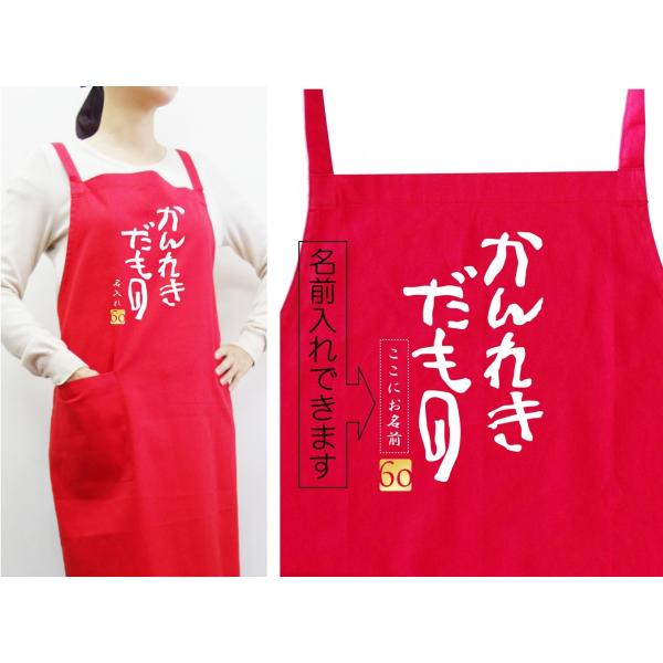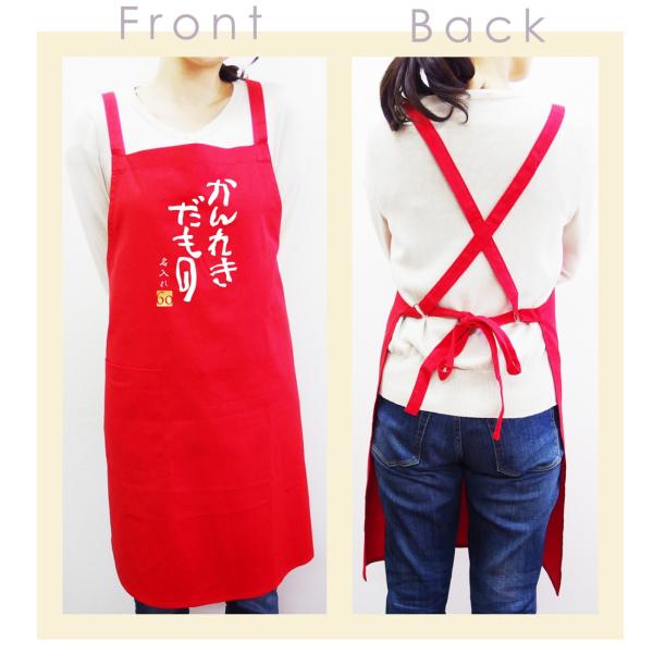 「かんれきだもの」デザインが最高!シャレもんオリジナル還暦祝い用エプロンです。もちろん高品質でしっかりとした厚手生地で実用性抜群です。名入れ可能ですので、プレゼントされる方のお名前を入れてみよう!サイズはフリーサイズです。肩から腰へ紐を通し、背面で結ぶタイプです。名前の文字は白文字、書体は筆文字となります。文字数は8文字(ひらがな・カタカナ・漢字)まで名入れいたします。他にも還暦商品が数十種ありますので、当店シャレもんの還暦コーナーをご覧ください。きっと、笑顔になる還暦祝いはシャレもん!!