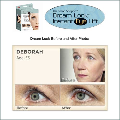 -. Binding : Misc. -. Brand : Dream Look -. EAN : 0040282248400 -. Feature : Instantly lifts your eyelids and dramatically shapes and defines your eyes / Takes years off your appearance / No expensive cosmetic eyelid surgery / Hypoallergenic, medical grade material / Genuine Dream Look Product - Made In USA - Beware of Chinese knock-offs! IMPORTANT NOTE: TO AVOID BUYING CHEAP, COUNTERFEIT PRODUCTS, ONLY ORDER FROM EM INNOVATIONS, INC. -. Label : EM Innovations, Inc. -. Manufacturer : EM Innovations, Inc. -. Model : DL64 -. MPN : DL64 -. NumberOfItems : 1 -. PackageQuantity : 1 -. PartNumber : DL64 -. ProductGroup : Beauty -. ProductTypeName : BEAUTY -. Publisher : EM Innovations, Inc. -. Studio : EM Innovations, Inc. -. Title : Dream Look Instant Eye Lift (As Seen on TV) -. UPC : 040282248400
