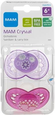 -. Title : Mam Crystal Orthodontic Silicone 2 Pacifiers 6+ Months - Assorted