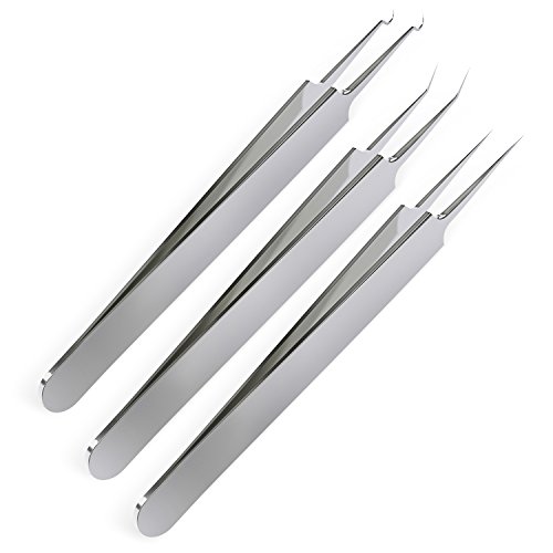 3 IN 1 BLACKHEAD REMOVER KIT: Includes 3 different blackhead removal tweezer. One straight mouth clip, one band curved tweezer, and one oblique tweezer.