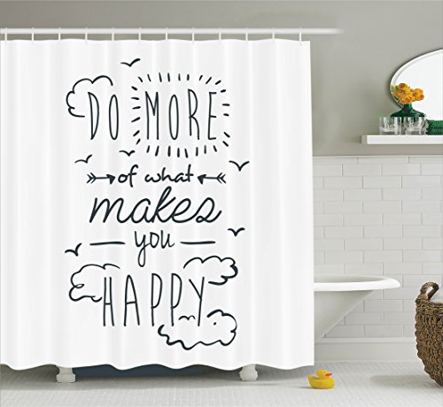 Extra Long Shower Curtain Quotes Decor by Ambesonne, "Do More of What Makes You Happy" Clouds Achievement Attitude Positivity Image, Fabric Bathroom Set with Hooks, 84 Inches, Black and White
