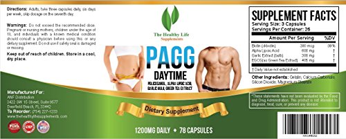 -. Binding : Health and Beauty -. Brand : The Healthy Life Supplements -. EAN : 0795525468083 -. Feature : WHAT IS PAGG ? : PAGG is a supplement stack providing the ability to increase fat loss through increased metabolism, or modulate cholesterol levels. The idea behind "stacking" them together is that anecdotal evidence sests they have a greater effect when they are combined. / MAXIMIZE WEIGHT LOSS SAFELY: The ingredients work together to Increase metabolism, Prevent storage of excess carbohydrates as fats and Help remove stubborn mature fat cells. This leads to accelerated weight loss / PROVEN RESULTS: This product is the same as that supported by the research of Tim Ferris in his recent publication: The 4 Hour Body. It is scientifically formulated to be an all-natural weight-loss accelerator. / TOP NOTCH INGREDIENTS: DAY TIME Pill- 600 mg of Alpha-Lipoic Acid (ALA) 300 mg of Garlic Extract 405 mg of EGCG (from decaffeinated green tea extract) 300 mcg of Biotin - a B complex vitamin. NIGHT TIME PILL - 23 mg of Policosanol derived from olive leaves 300 mg of Alpha-Lipoic Acid (ALA) 200 mg of Garlic Extract 100 mcg of Biotin - a B complex vitamin. Cocktail of 8 ingredients to help lose weight and gain muscle faster ! / 100% CUSTOMER SATISFACTION : Our premium PAGG stack supplement pills is produced in a FDA, GMP certified facility and is a Non GMO product. Our customer mean the world to us, so we have developed this supplement with the choicest ingredients for guaranteed satisfaction results. -. IsAdultProduct : 0 -. Label : The Healthy Life Supplements -. Manufacturer : The Healthy Life Supplements -. MPN : PS -. PackageQuantity : 2 -. PartNumber : PS -. ProductGroup : Health and Beauty -. ProductTypeName : HEALTH_PERSONAL_CARE -. Publisher : The Healthy Life Supplements -. Studio : The Healthy Life Supplements -. Title : Ultimate PAGG Stack Formula - Blend of 8 Potent Dietary Supplements - Helps to Build Muscle and Increase Weight Loss -. UPC : 795525468083