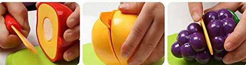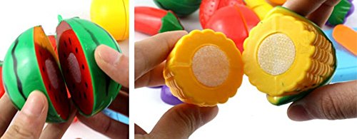 -. Feature : Set of colorful fruit and vegetable toys for your children / Set (11pcs) includes: Orange, Apple, Watermelon, Corn, Grape, Strawberry, Banana, Eggplant, Chili, Knife, Cutting board / Children learn about different kinds of fruits and their individual appearance / Children can chop fruit into half pieces that stick together with velcro, and then fit them back together / Package Included : 1 Set Cutting Fruit Vegetable Pretend Play Children Kid Educational Toy (Without Retail Packaging)
