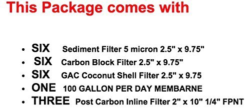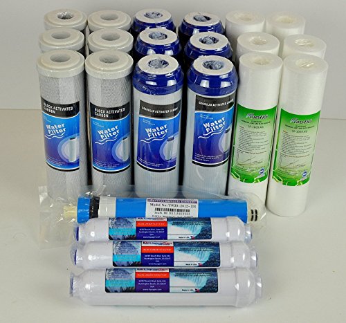 -. Binding : Kitchen -. Brand : LiquaGen -. EAN : 0672713464310 -. Feature : This custom kit should fit most reverse osmosis water systems in the market. / Includes: 6 pcs- 5 Micron Sediment Filters, 6 PCS GAC Filters, 6 PCS 5 Micron Carbon Block Filters, 1 RO Membrane, 3 Inline Carbon Filters. / All of our products are shipped directly from our factory. This allows us to cut out the middle man and pass on the SAVINGS to you! It's that simple. / If you have ANY questions please feel free to contact us 1(951)-400-3365. / 3 YEAR SUPPLY- 22 PCS REVERSE OSMOSIS Water Filter Kit w/50 GPD MEMBRANE | REPLACEMENT SET- MEGA SAVINGS | LiquaGen -. IsAutographed : 0 -. Label : LiquaGen-Water Filter. -. Manufacturer : LiquaGen-Water Filter. -. PackageQuantity : 22 -. ProductGroup : Home -. ProductTypeName : HOME -. Publisher : LiquaGen-Water Filter. -. Studio : LiquaGen-Water Filter. -. Title : 3 YEAR SUPPLY- 22 PCS REVERSE OSMOSIS Water Filter Kit w/75 GPD MEMBRANE | REPLACEMENT SET- MEGA SAVINGS | LiquaGen -. UPC : 672713464310
