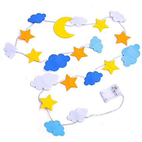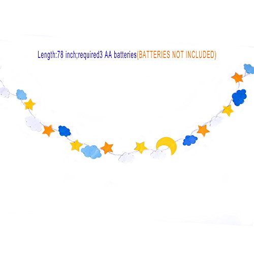 Each string is 6Ft long with 20 mini LED lights decorate with star moon and cloud