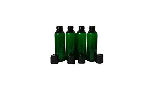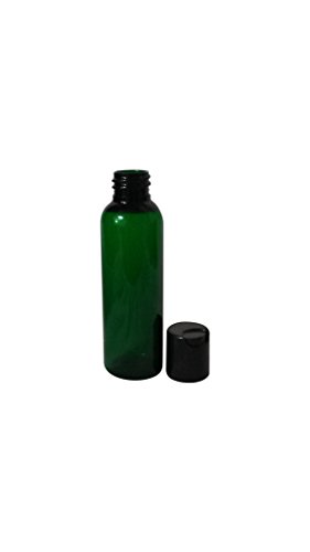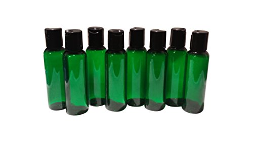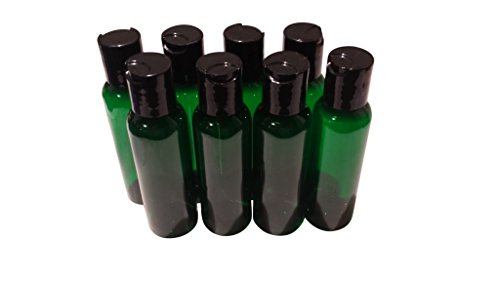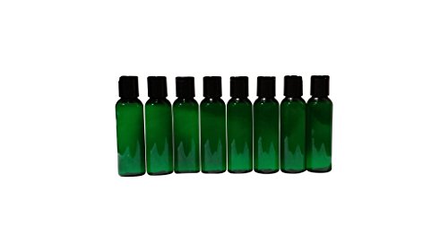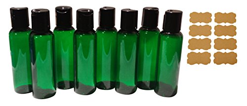 2oz Plastic Bottles GREEN PET Qty 8 w/ Smooth Black Disc Top Caps & Kraft Labels 60ml or 2 Oz