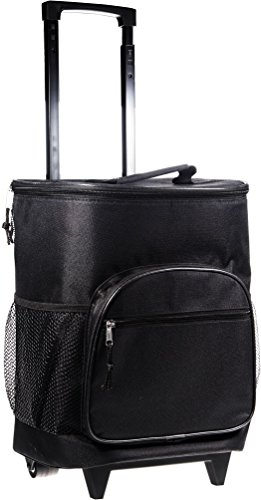 Attractive Insulated Rolling Cooler Bag with Telescoping Handle, 16-inch, 21-quart Wheeled Cooler (Solid Black)