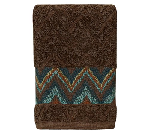 Product Description Web exclusive! Zig while everyone else zags with a trendy Bacova Guild fingertip towel. From the Sierra Zigzag collection, its textured tonal designs and chevron border in teal and earth tones add pattern, color and contemporary flair to your bath or powder room. Coordinate one or more of these soft cotton guest towels with other accessories in the line to quickly pull together a stylish bathroom look. 0