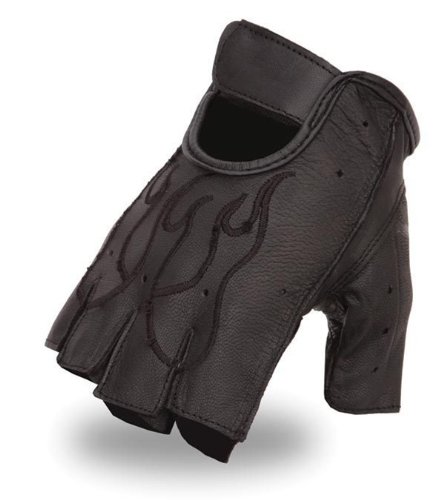 -. Title : Men's Fingerless Leather Gloves. Red Embroidery. FI166GEL-RED
