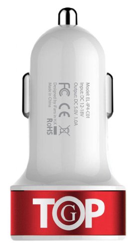 - Feature : Universal USB ports ***COMPATIBLE with Apple iPad Air/4/3/2, iPhone 5S/5C/5/4S/4/3GS, iPod, Samsung Galaxy Tab 3/2, Note 10.1 2014 (NOT For 2012 Model)/3/2, S 4/3/2, Motorola Droid Rarz Maxx, Nokia, HTC One, Lenovo S6000, Kindle Fire HD, Google Nexus 7/5/4/S/One, Android/Blackberry/Windows Phones & Tablets, PSP, GPS, MP3/MP4, Cameras, Bluetooth Speakers/Headsets, Battery Cases, Power Banks & Most of USB2.0/USB3.0 Powered Devices*** / High Speeding Charging 3.1A Dual USB Output, Fast charging tablet and phone simultaneously, optimal performance when plug iPad or Tablet to 2.1 Amp port & iPhone or other phone to 1.0 Amp port. Smart charge at maximum speed limited by devices or USB ports; never have to worry about which port for which device. Use your own cable to charge your devices. / Safely protect devices and charger from overheated. LED only light up when charger in good working condition: input voltage is in working range 10.5V-18V, automatically stops working when over current or over voltage is detected, switch to minimal charging current when battery is full. With the high charging efficiency of over 85%, the charger itself never get hot. High quality fire proof material & anti-oxidation aluminum pull tab.CE, FCC MFI & RoHS certificates. / Less than 2.5 inches with a stylish non-bulky, short and slim design. Fuse Free with over voltage and overcharge protection with no fuse to ever replace. Made with high-quality durable ABS plastic and aluminum. / Vibration and shock reliability of the electronics component and contact spring mechanics stay firmly in the cigarette lighter plug & provide continuous power on-the-go. Easy fit and remove with stylish pull-tab, compact mini design & ultra light weight. TopG EL-IP4-C01is a robust & durable car charger, ultra low electronics noise offering the luxury level of comfort inside the cabin.