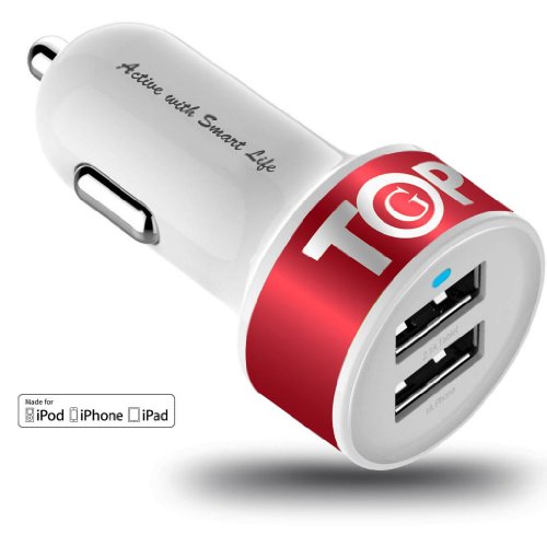 - Title : TopG [Lifetime Warranty] Dual USB Ports 3.1A Portable USB Car Charger for iPhone 5 5S 5C 4 4S,iPad 4 3 2,iPad mini,iPad air Battery Power Supply for All Apple Device (Lightning Cable/Adapter Not Included)- (White+Red)