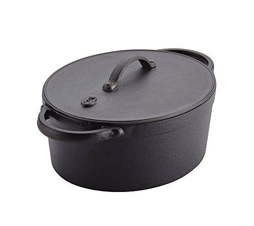 Comfort foods are comforting when cooked in an old-fashioned cast iron casserole, and making them is simpler with the easy-care, easy-clean Farberware Cookware 5-Quart Oval Cast Iron Dutch Oven. Cast iron cookware has been an important part of cooking for centuries, thanks to its exceptional durability and heat retention. Farberware now joins that time-tested quality and dependability to modern engineering and performance with this cast iron Dutch oven. Pre-seasoned inside and out, this covered casserole delivers cast iron cooking results without years of care and conditioning. And the oval shape and pot capacity are perfect for roast pork pernil, herb-crusted whole chicken, stews, pastas, and other favorites. Farberware Cast Iron cookware is induction suitable, and broiler safe, so this Dutch oven is ideal for recipes that start on the stove and finish in the oven or broiler. It's perfect for a homemade chicken pot pie, for a Sunday night stew, extra stuffing at the holiday meal and other wonderful recipes. The vented lid allows cooks to release steam and heat to help control cooking, and the side and lid handles are double-riveted. Oven safe to 500 Degree, this covered casserole is sure to become a go-to workhorse in the home kitchen. Best of all, it comes with the Farberware Cookware Lifetime Warranty. Shape up comfort foods like casseroles and pasta bakes with the Farberware Cookware 5-Quart Oval Cast Iron Dutch Oval that gives cast iron home cooking a pre-seasoned touch of convenience.Feature