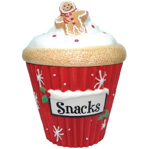 Westland Giftware Ceramic Snack Jar, 9.25-Inch, Gingerbread Man Cupcake