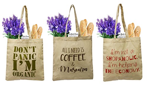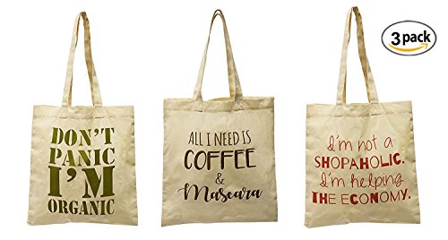 Earthwise Organic Cotton Reusable Grocery Bag Shopping Totes Canvas w/cute, funny prints