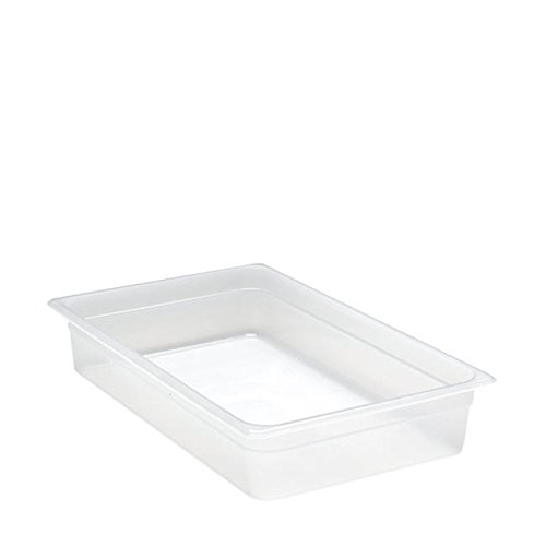For a more economical choice for prep tables, food bars and vending carts, use this translucent, 4" high full size food pan made of durable polypropylene. The translucent material allows for content visibility, and this pan withstands temperatures from -40°F to 160°F, making it good for both warm and cold food. The smooth, non-stick interior makes cleaning easy, and also helps the pan stack neatly without sticking. Translucent Material for Visibility Temperature Range: -40°F to 160°F Non-Stick Smooth Interior Uniform 1/2" Flange Stackable Dishwasher Safe NSF Certified Conforms to HACCP Guidelines Capacity: 13.7 Qt Height: 4" Width: 12-3/4" Depth: 20-7/8" Material: Polypropylene Color: Translucent Model #: 14PP Color Code: 190 140050Feature