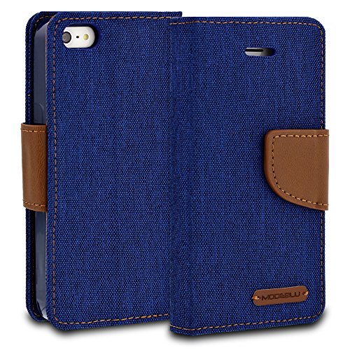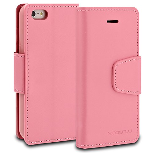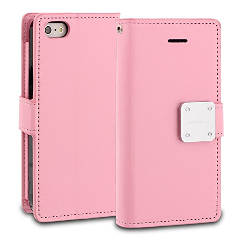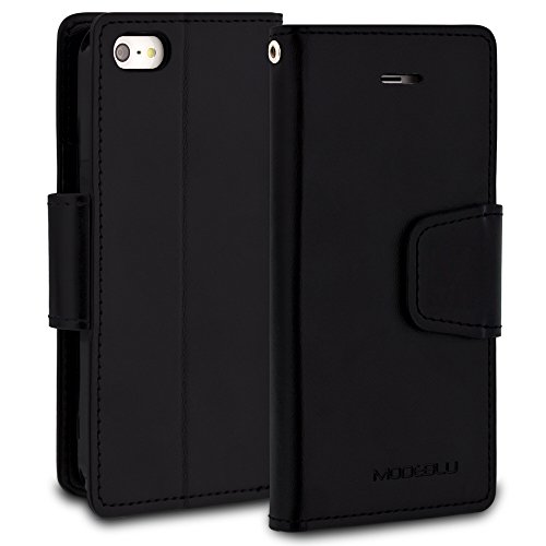 iPhone SE Case, ModeBlu [Classic Diary Series] [White] Wallet Case ID Credit Card Cash Slots Premium Synthetic Leather [Stand View] for Apple iPhone SE, 5 & 5s