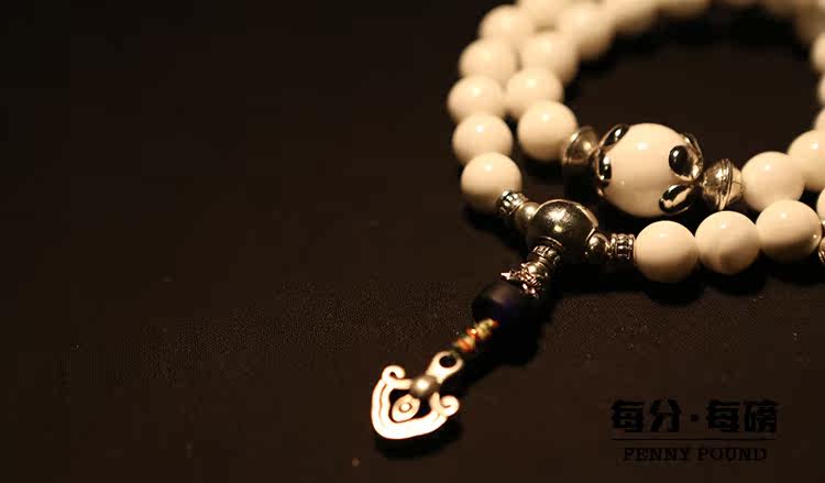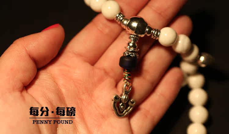 宝贝材质:白砗磲 蓝色琉璃 藏银