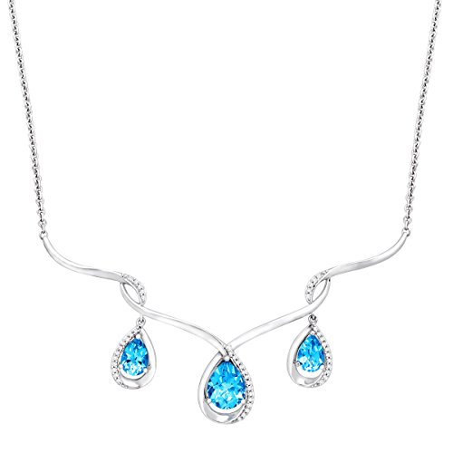 -. Feature : 3 3/4 ct Pear-Cut Natural Swiss Blue Topaz / 3/4 ct Round-Cut Diamonds / Color I-J, Clarity I3 / Crafted in Sterling Silver / 16-Inch Total Length