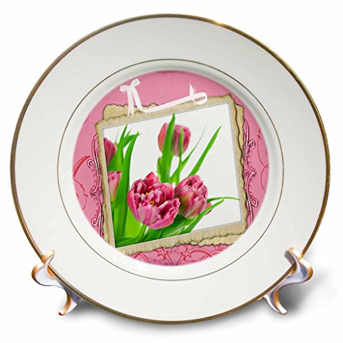 3dRose cp_53165_1 Tulips and Bow Porcelain Plate, 8-Inch