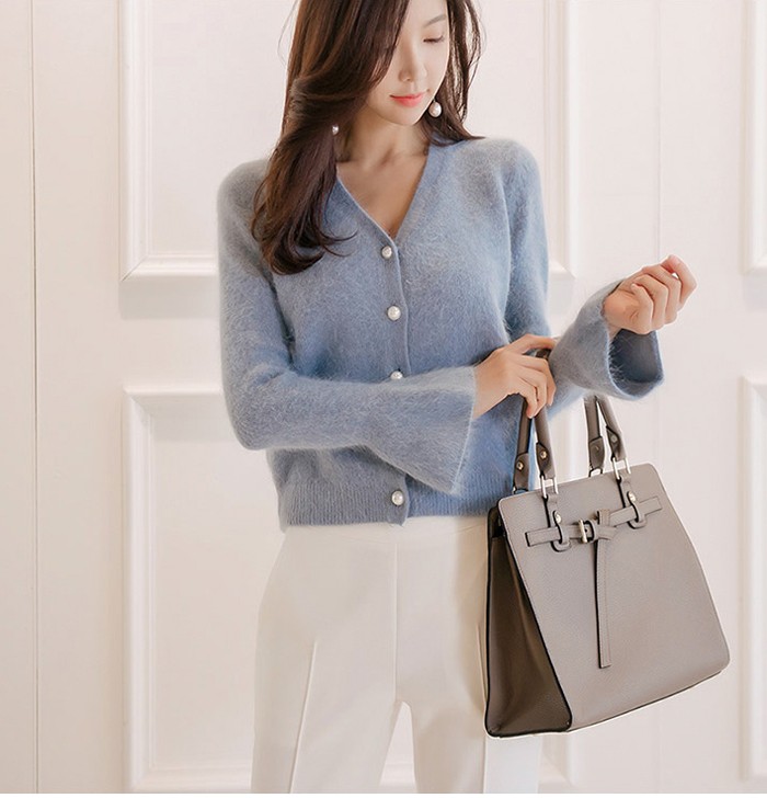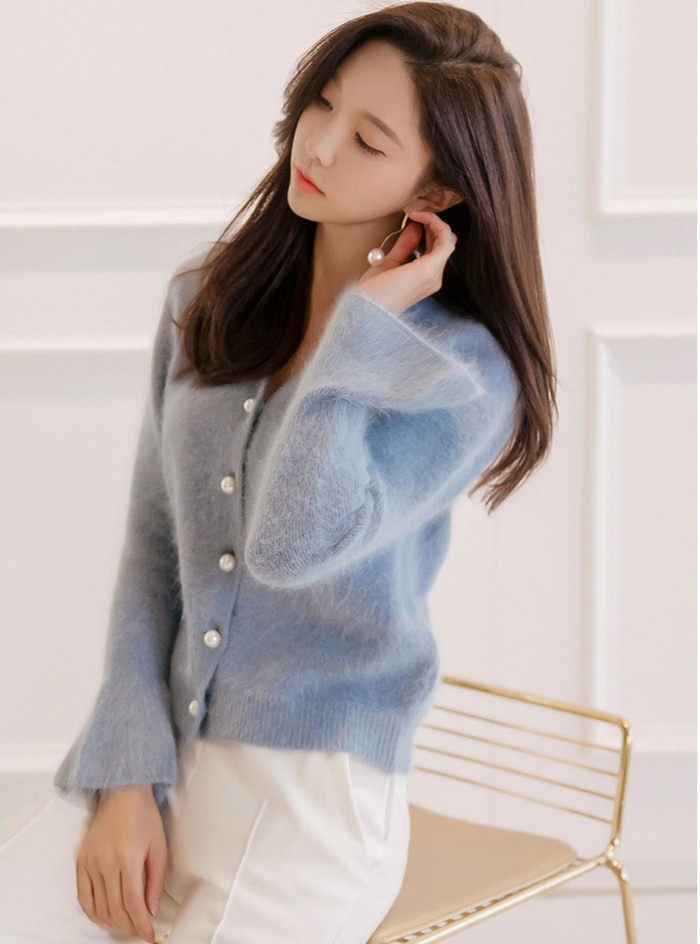 商品名:カーディガン 起毛 ニット ウール混 ハーフ丈