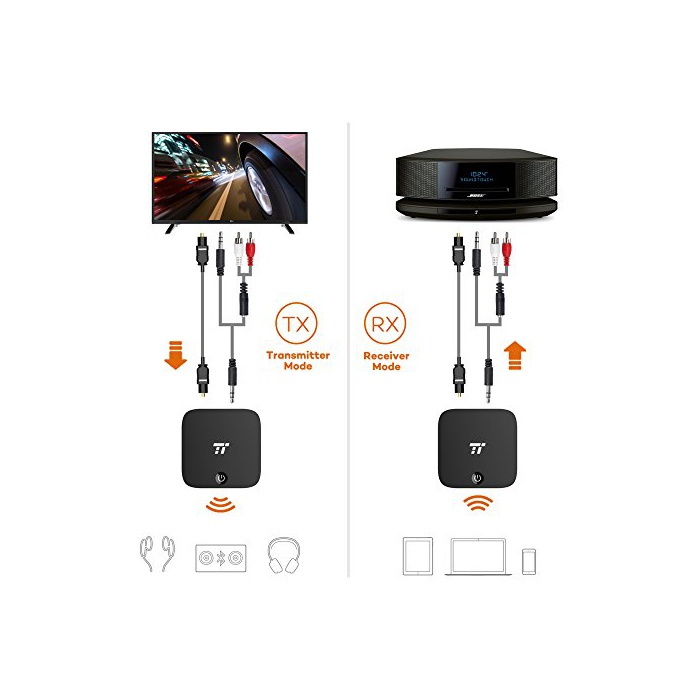 TaoTronics 2-in-1 Bluetooth 4.1 트랜스미터&리시버,디지탈 광케이블 토스 링크 3.5mm 음성 케이블 wireless 어댑터 aptX CD음질 대응 연체 없