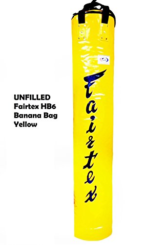 Fairtex UNFILLED HB6 - 6ft Muay Thai Banana Bag Yellow Heavy Punching Bag for Kick Boxing MMA K1