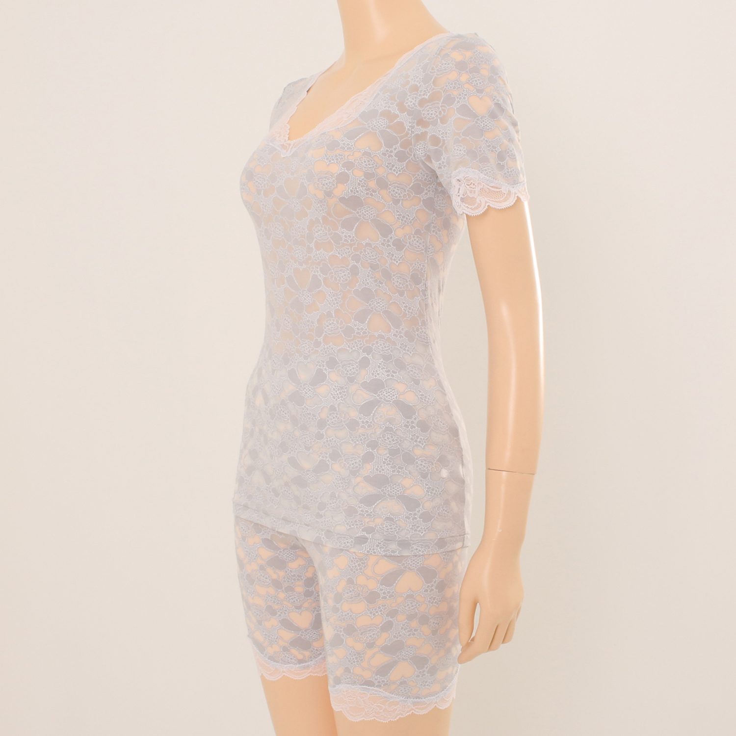 섬세하면서 가벼운 자카드레이스를 매치하여 여성스러운 라인으로 세련된 실루엣을 연출하고
