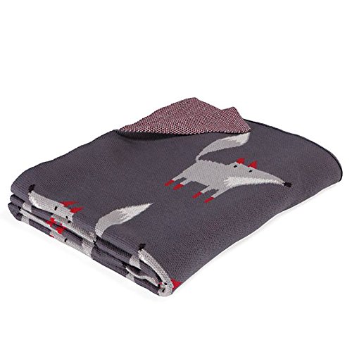 - Keep warm and stylish with this reversible Gray throw featuring charming foxes with red tails and ears