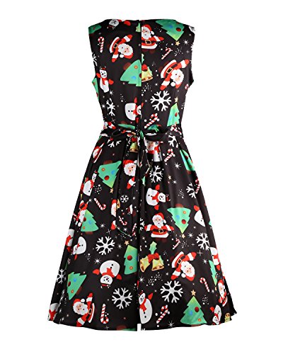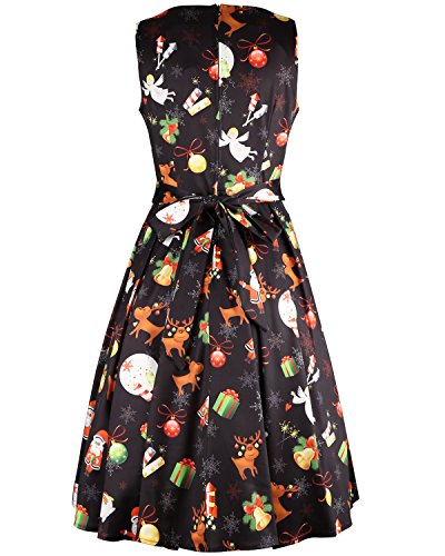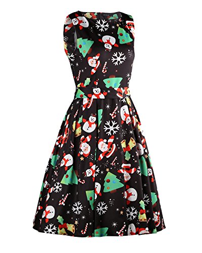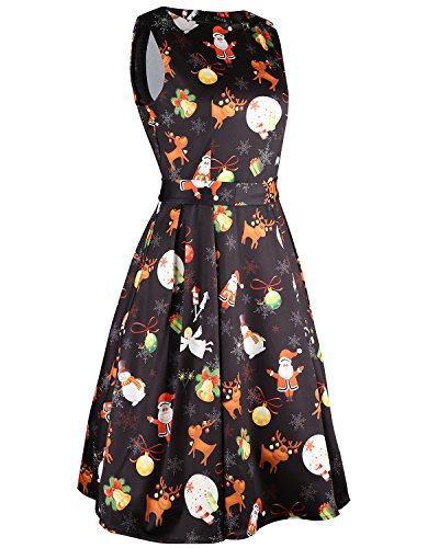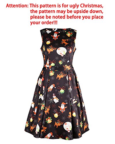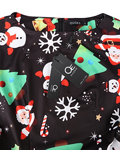 OUGES Women's Christmas Gifts Fit and Flare Cocktail Dress(Black Xmas-03,S)