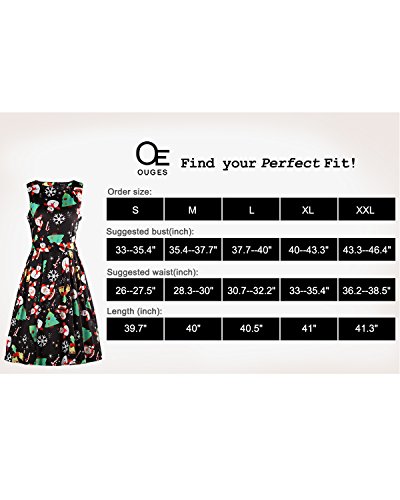 OUGES Women's Christmas Gifts Fit and Flare Cocktail Dress(Black Xmas-02,L)