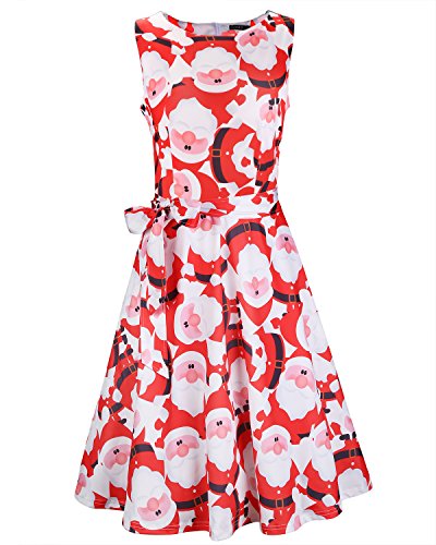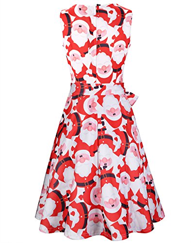 OUGES Women's Christmas Gifts Fit and Flare Cocktail Dress(Red Santa,S)