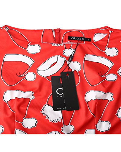 OUGES Women's Christmas Gifts Fit and Flare Cocktail Dress(Red Xmas-01,L)