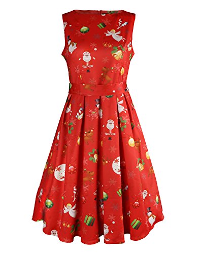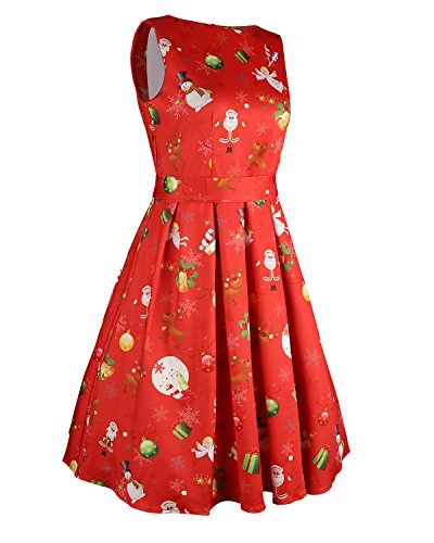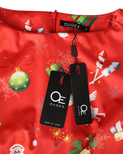 OUGES Women's Christmas Gifts Fit and Flare Cocktail Dress(Red Xmas-01,S)