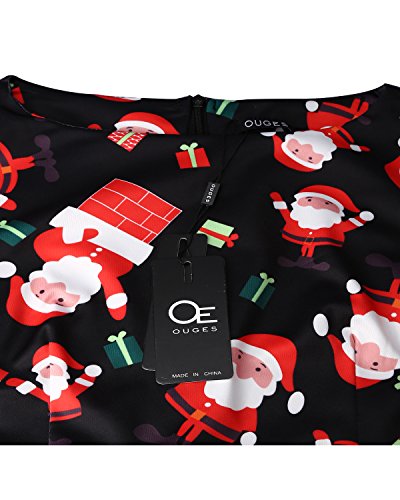 OUGES Women's Christmas Gifts Fit and Flare Cocktail Dress(Black Santa,XL)