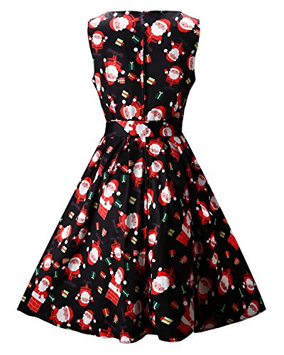 OUGES Women's Christmas Gifts Fit and Flare Cocktail Dress(Black Santa,S)