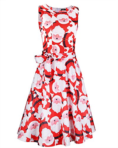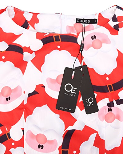 OUGES Women's Christmas Gifts Fit and Flare Cocktail Dress(Red Santa,L)
