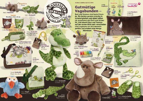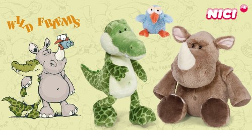 -. Feature : Wild Friends 23 Krokodil & Nashorn / Schultertasche klein Krokodil Plüsch 24x19x7cm / getestet nach Spielzeugrichtlinien EN88 / designed in germany - höchste Qualität und einzigartiges Design