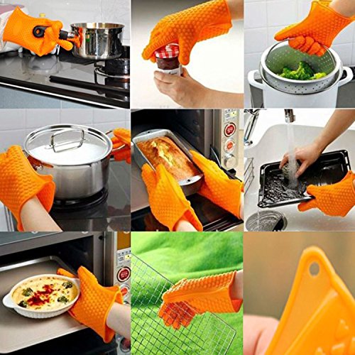 - HEAT RESISTANT SILICONE GLOVES: forget bulky easily burnt cotton mitts and thin rubber gloves, our Heat Resistant Silicone Gloves are perfect for everyday kitchen use, from handling and moving hot dishes and turning meats, to cleaning hot grills, our Heat Resistant Gloves offer the best protection!