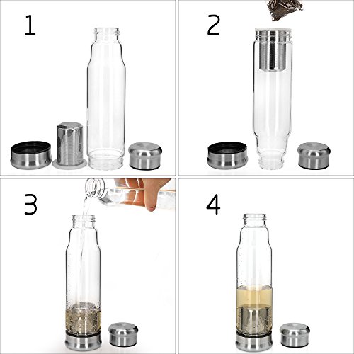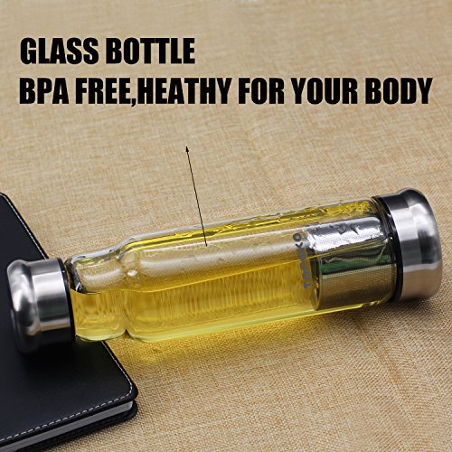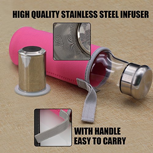 Topoko 18.5 Oz Glass Water Bottle-Extra Strong Crystal Glass Bottle With Portable Nylon Sleeve Handmade Leak Proof Top Quality With Tea infuser