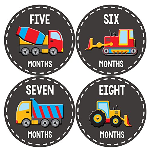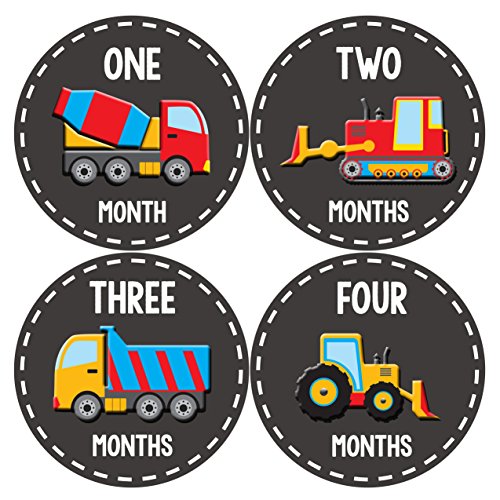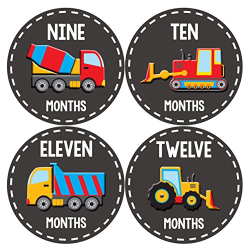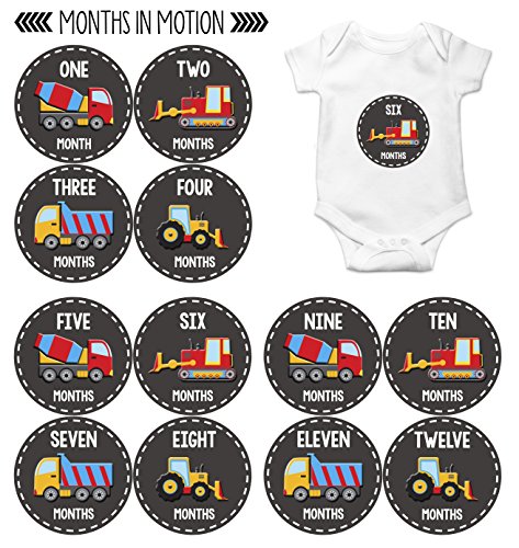 Months In Motion - Baby Month Stickers - Monthly Baby Sticker for Boys - Construction Trucks (1092)