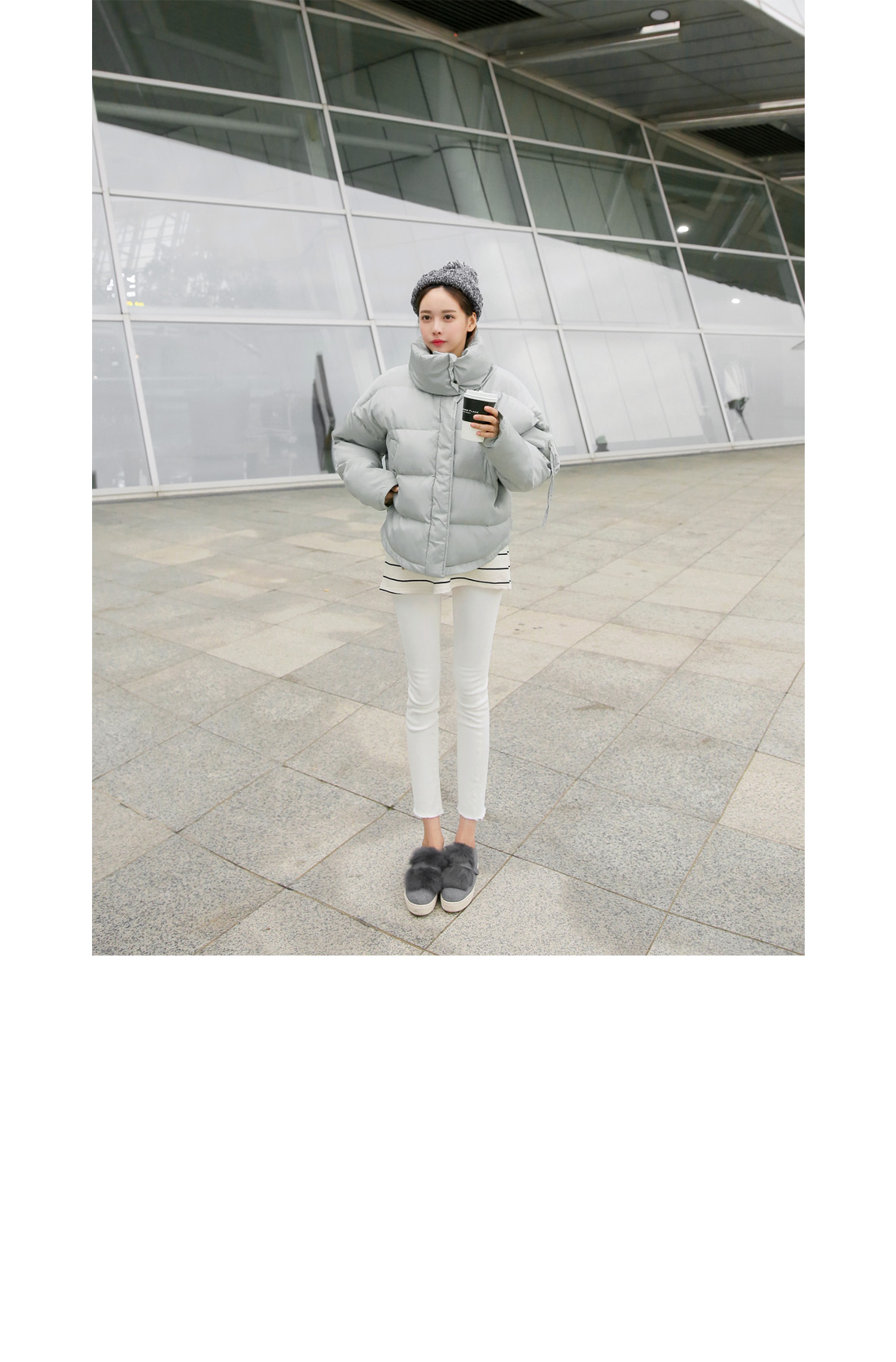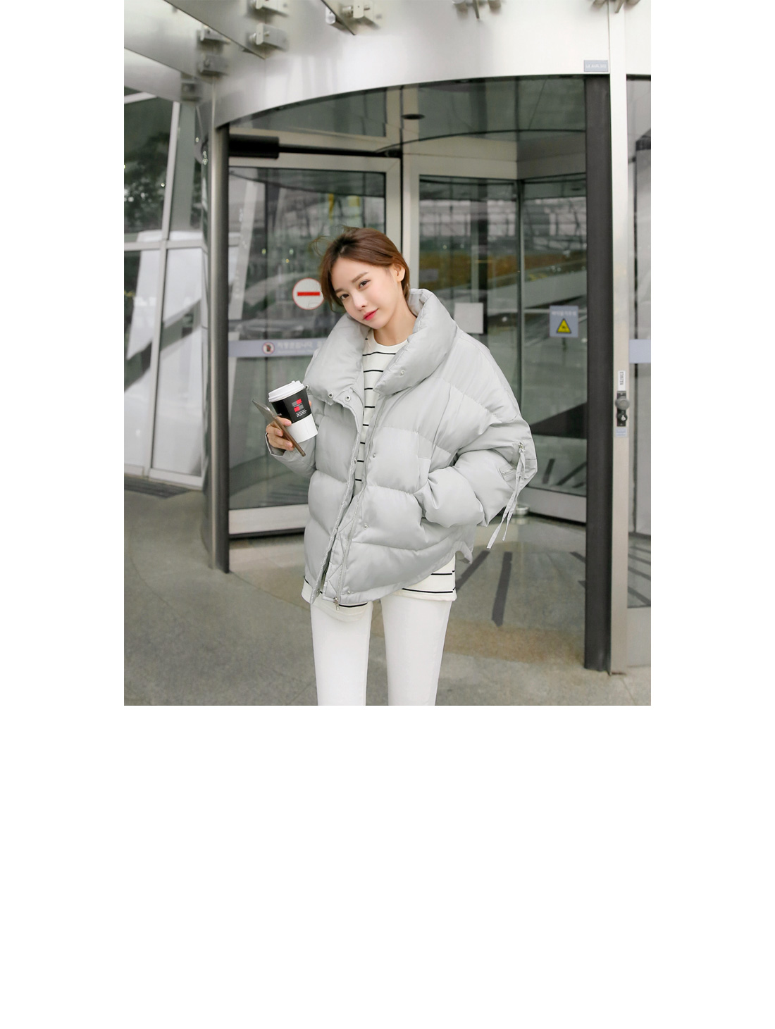 센터 부분 단추와 지퍼 디테일로 오픈, 클로징을 도와주며