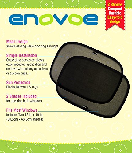 Best Value on Amazon, Enovoe Comfy Ride Cling Shades Comes with 2 Free Bonuses valued at $29. A Free Premium Pouch to store car window shades when not in use. Free E-Book filled with Tips for keeping your Children Safe in the Heat.