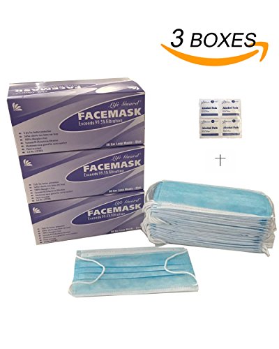 150 pcs- PREMIUM (3-ply) Disposable Earloop Face Masks - Medical Grade-- Bacterial Filtration Over 99.5%--- Surgical, Dental, Allergy, Cold & Flu...