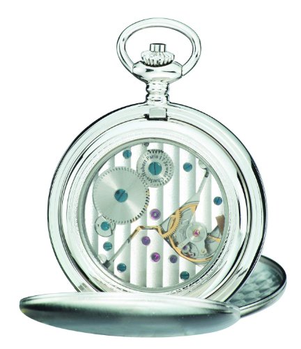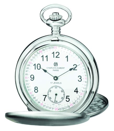 -. Title : Charles-Hubert, Paris 3908-WRR Premium Collection Stainless Steel Satin Finish Double Hunter Case Mechanical Pocket Watch