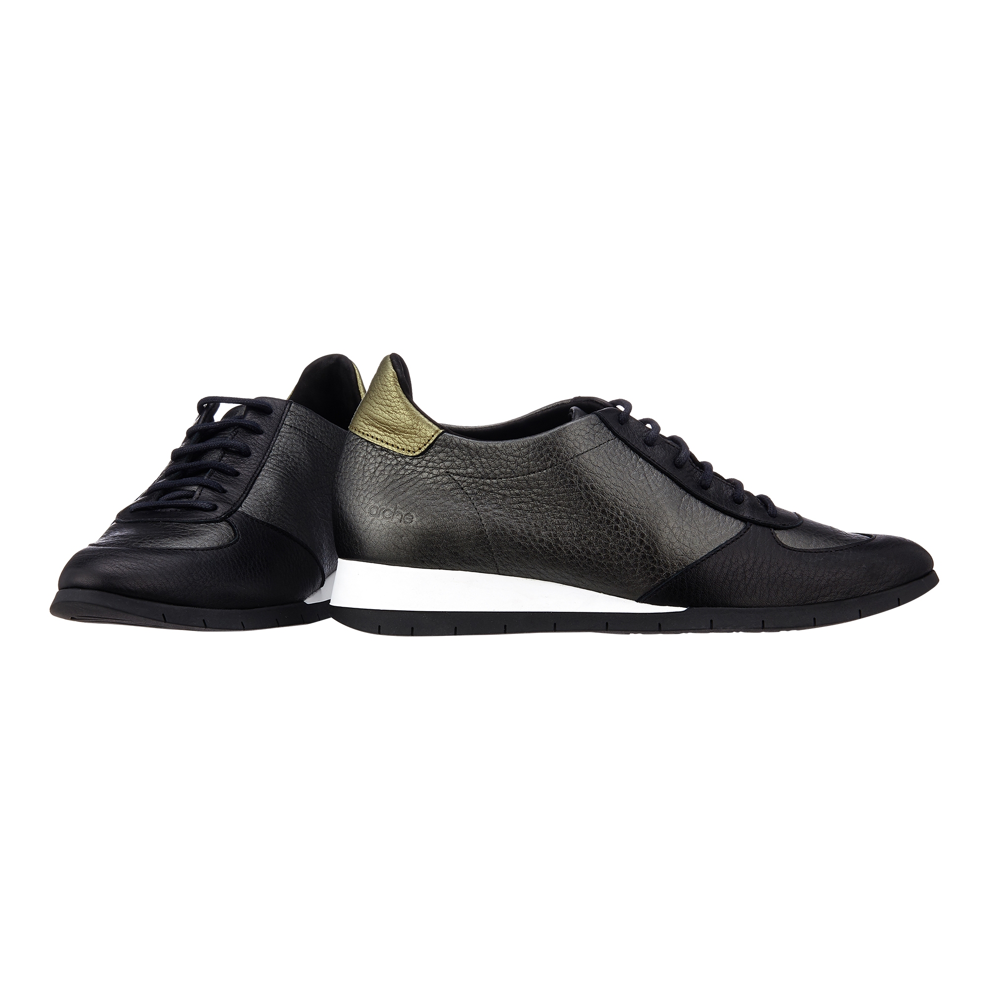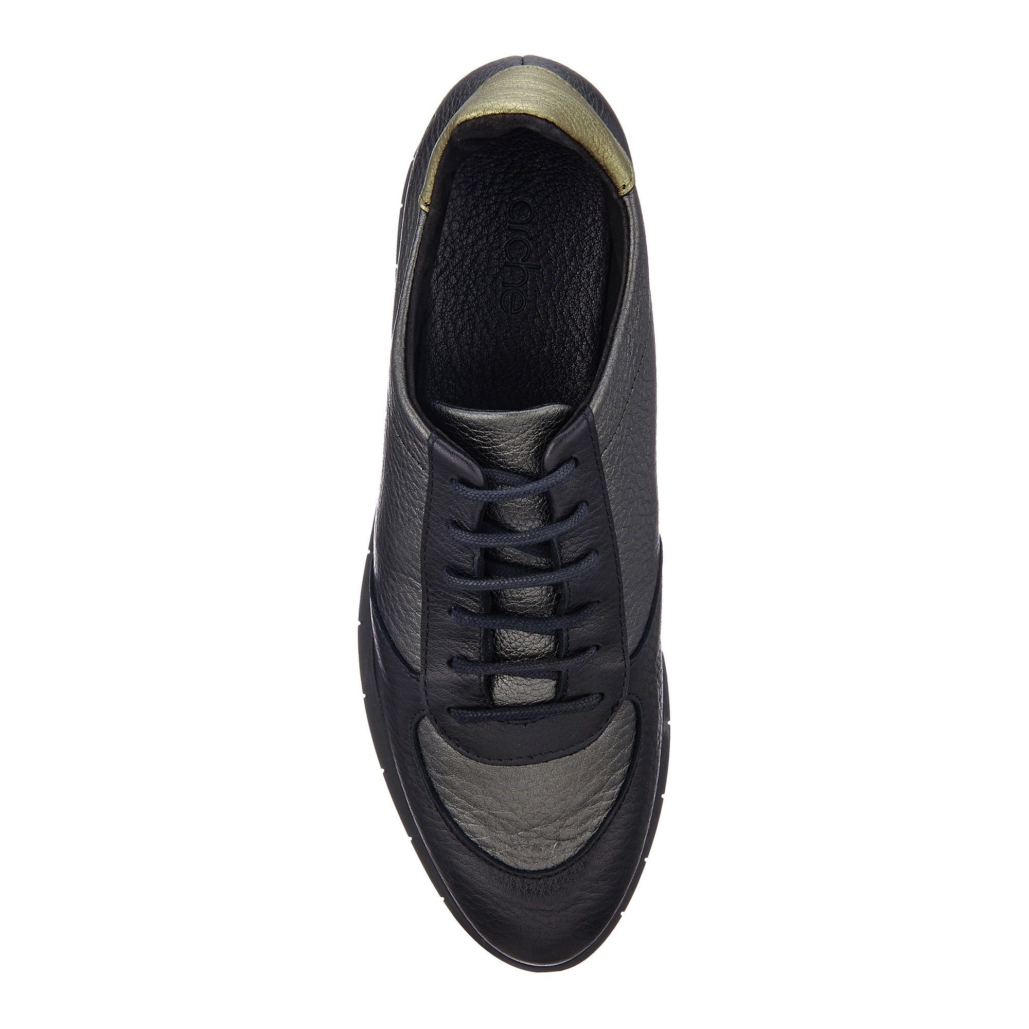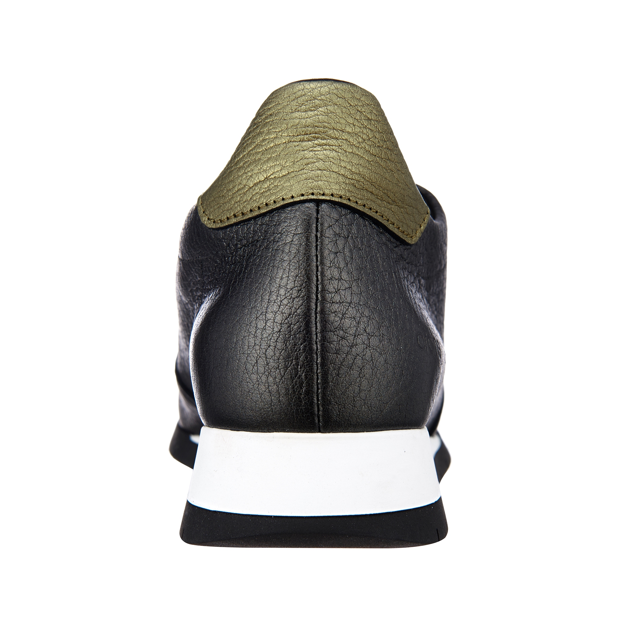 디자인 포인트:<br>- 메탈릭한 텍스쳐 외관이 돋보이는 트렌디한 무드의 스니커즈<br>- 천연 가죽 소재의 고급스러운 포인트 아이템<br>- 다양한 룩에 활용도 높은 데일리 상품